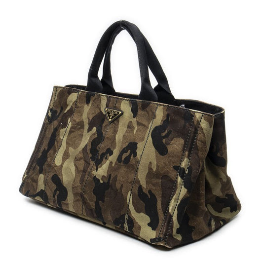 Prada Large Canapa Tote Green Brown Black