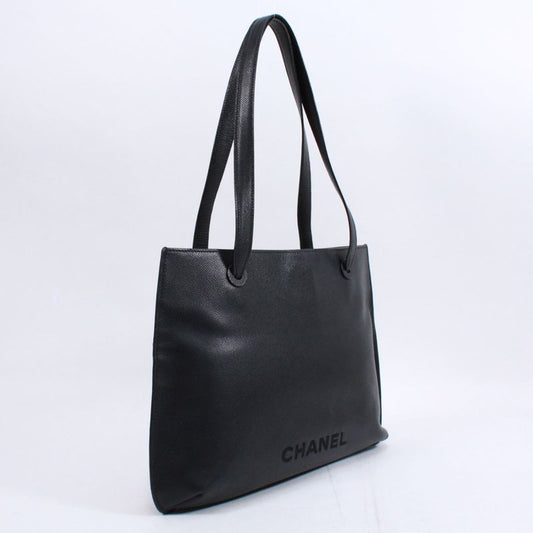 Chanel Logo Embroidery Caviar Leather Black Tote