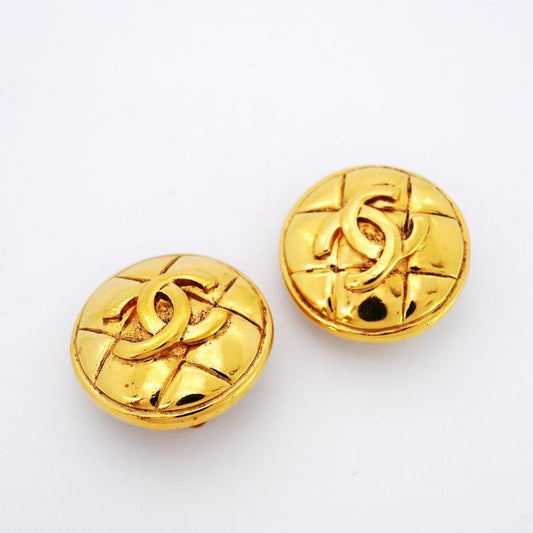 Chanel Earrings Vintage CC Logo Quilted Round