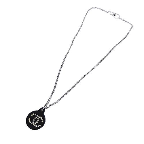 Chanel Necklace Pendant CC Logo Rhinestone Black