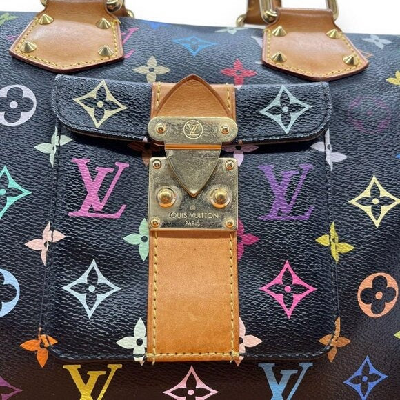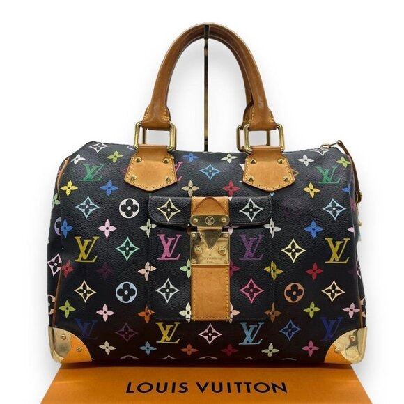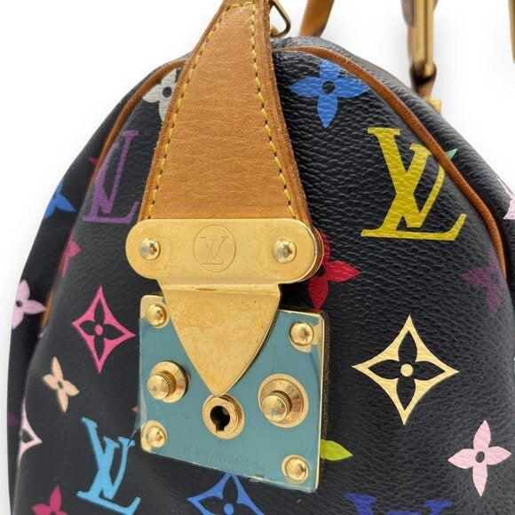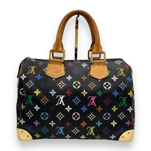 Louis Vuitton Speedy 30 Monogram Multicolor Sac Bag Black Tote Handbag