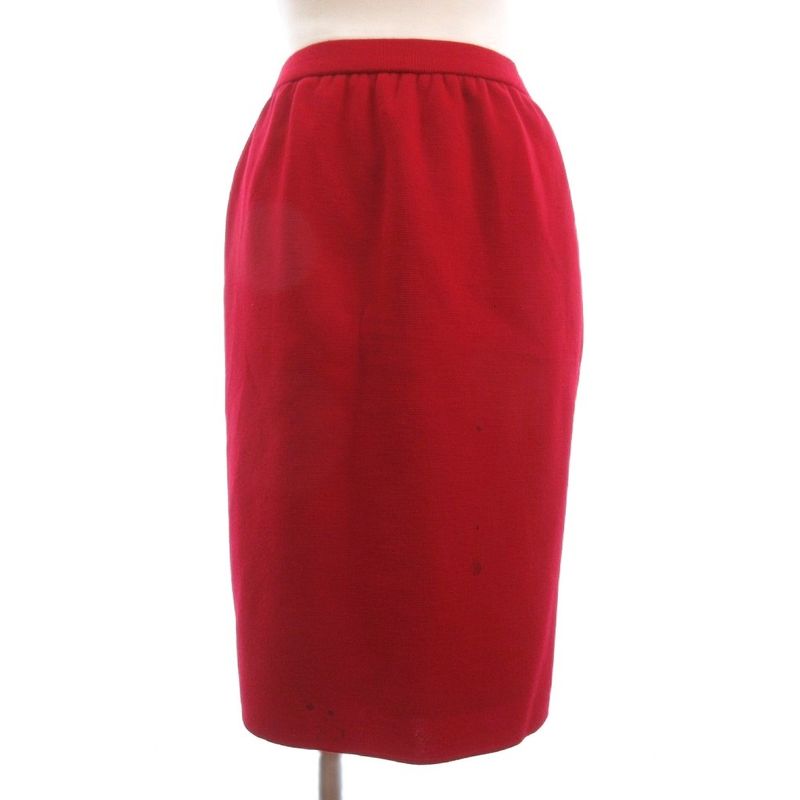 Name: Yves Saint Laurent YVES SAINT LAURENT Vintage Suit Setup Cardigan Knit Jacket Skirt Knee Length Long Sleeve Gold Button M Red Red • GY14